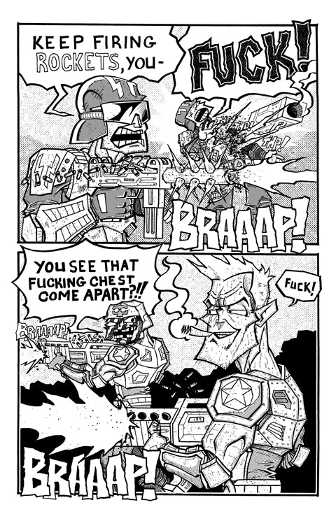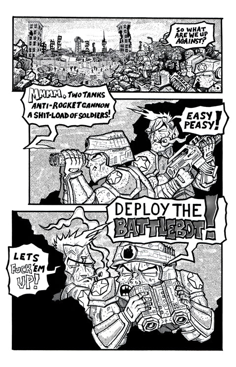 The First Colony is the most brutal and power hungry of these militias. Thanks to its technological advantages, it expands its territory and production through its growing slave labour force. On the eve of the events from Zombie Commandos From Hell!, it makes its greatest breakthrough: the formidable Assault Borgs. Through drugs and cybernetics, its champions are born!